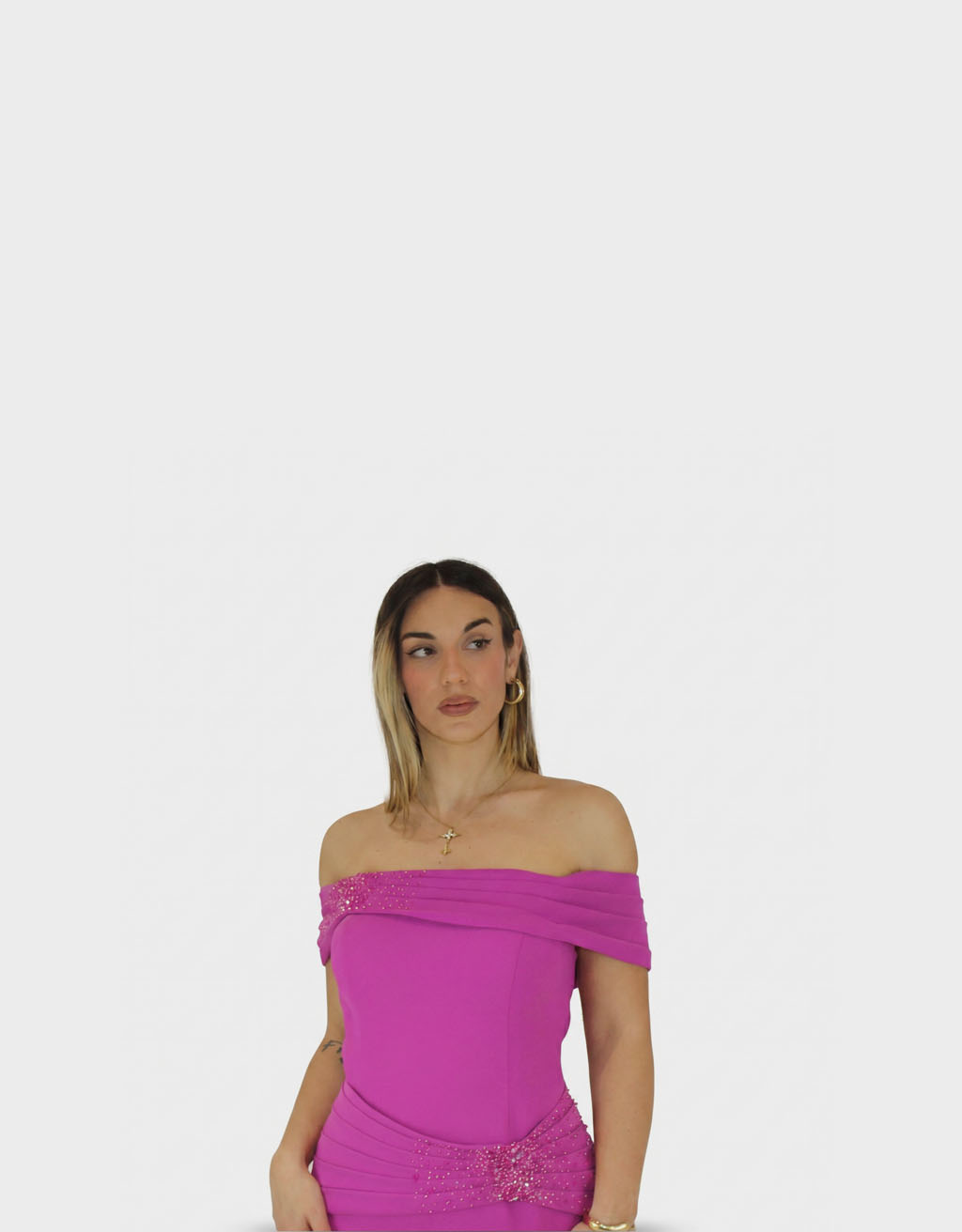 Il nuovo abito fucsia della nuova collezione di Elizabeth Moda è scenografico e ultra femminile, questo abito monospalla è pensato per lasciare il segno