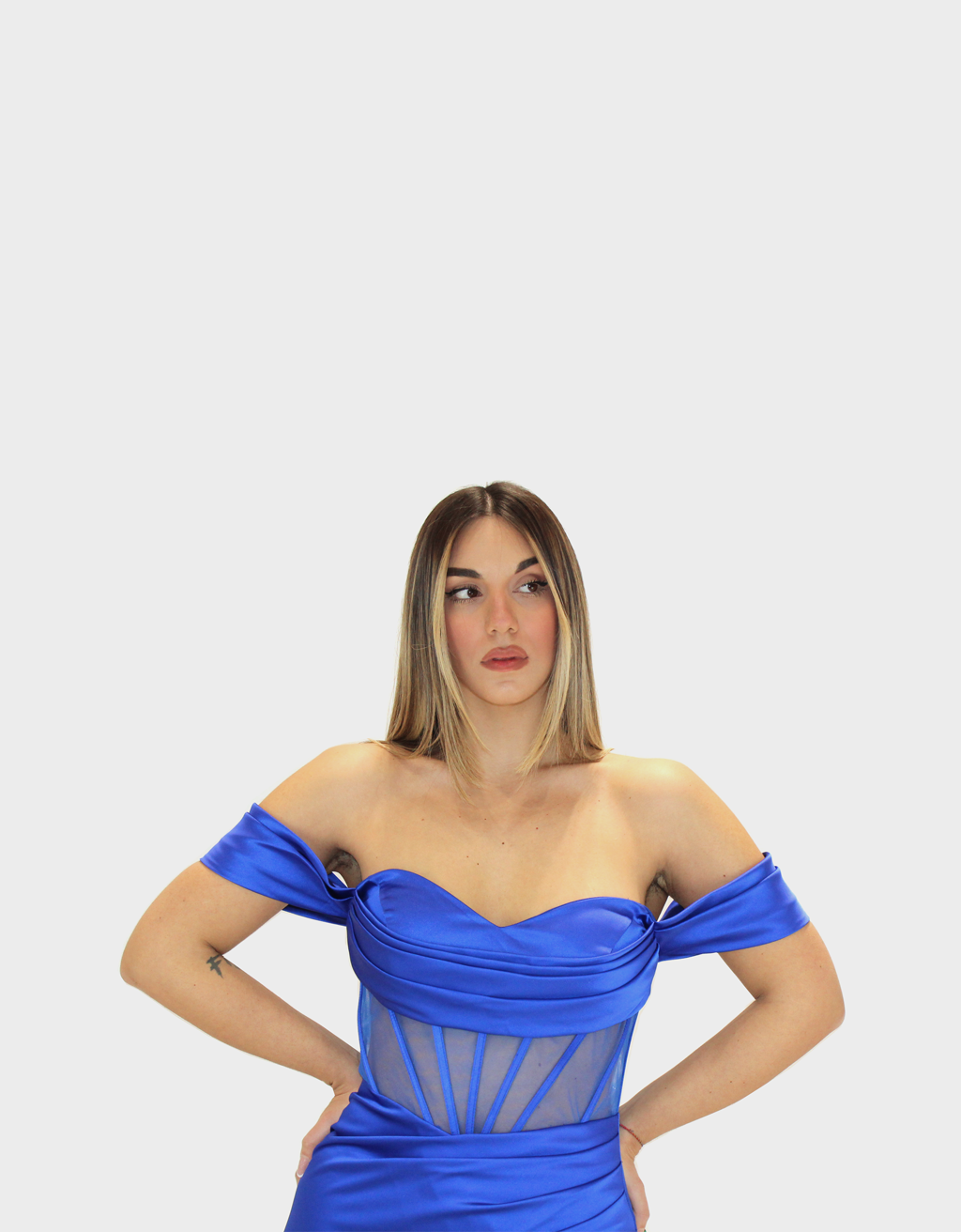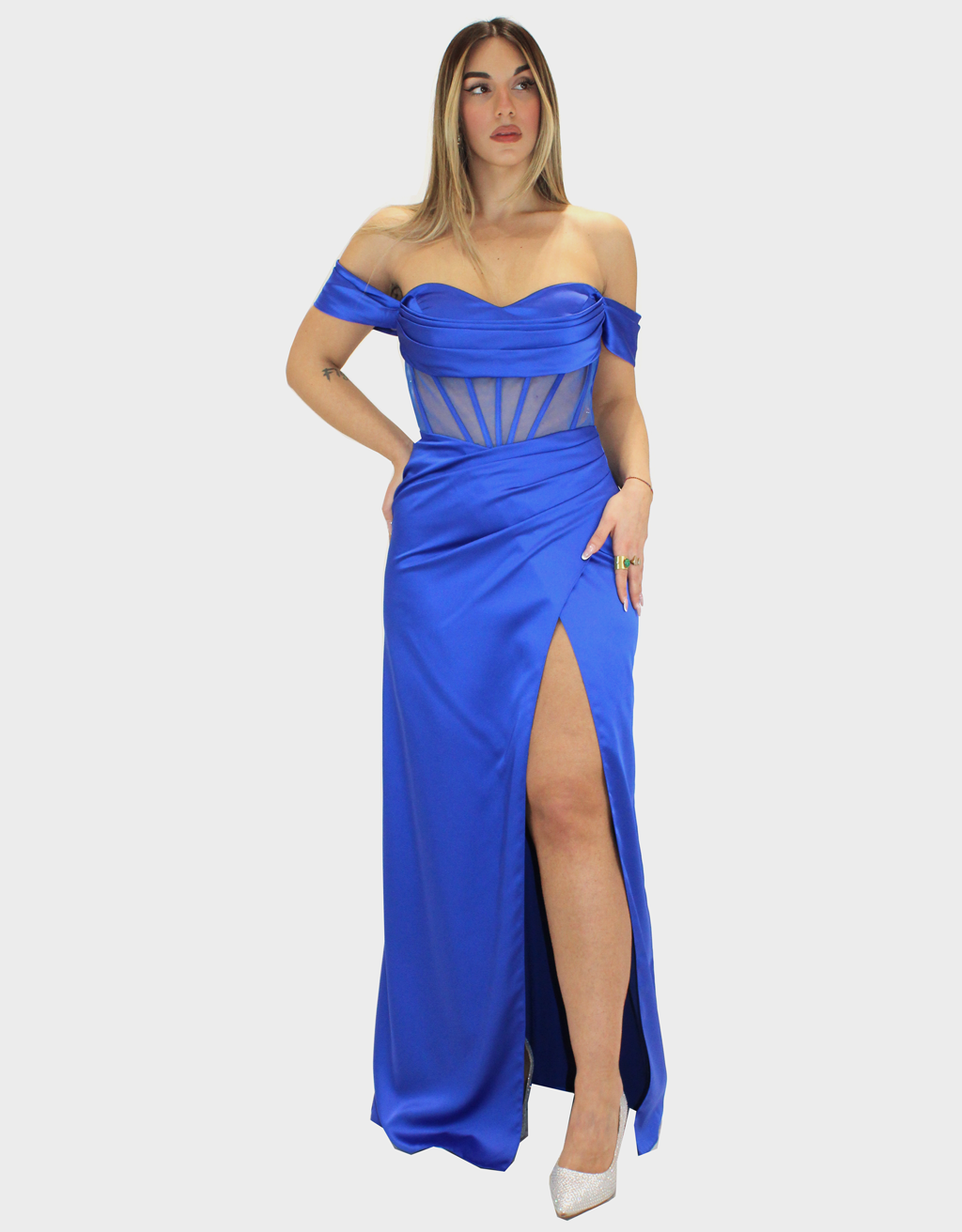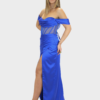 Il nuovo abito blu cobalto della nuova collezione di Elizabeth Moda è di grande impatto realizzato in luminoso tessuto di raso, scelto per la sua eleganza e la sua caduta fluida.