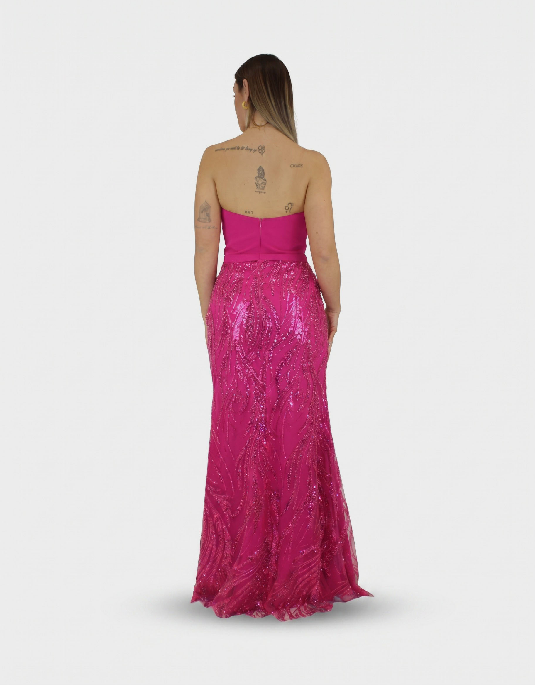 Il nuovo abito fucsia della nuova collezione di Elizabeth Moda è audace e sofisticato, questo abito a sirena è pensato per esaltare la silhouette.