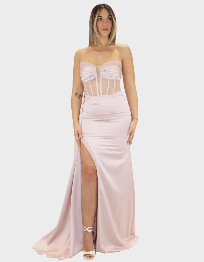 Il nuovo abito glicine della nuova collezione di Elizabeth Moda è raffinato e di grande impatto scenografico, pensato per valorizzare la silhouette con eleganza e femminilità