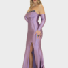 Il nuovo abito glicine della nuova collezione di Elizabeth Moda è di grande impatto scenografico realizzato in pregiato tessuto di raso