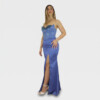 Il nuovo abito indaco della nuova collezione di Elizabeth Moda è sensuale e sofisticato, questo abito a sirena in raso è pensato per esaltare la silhouette con eleganza e carattere.