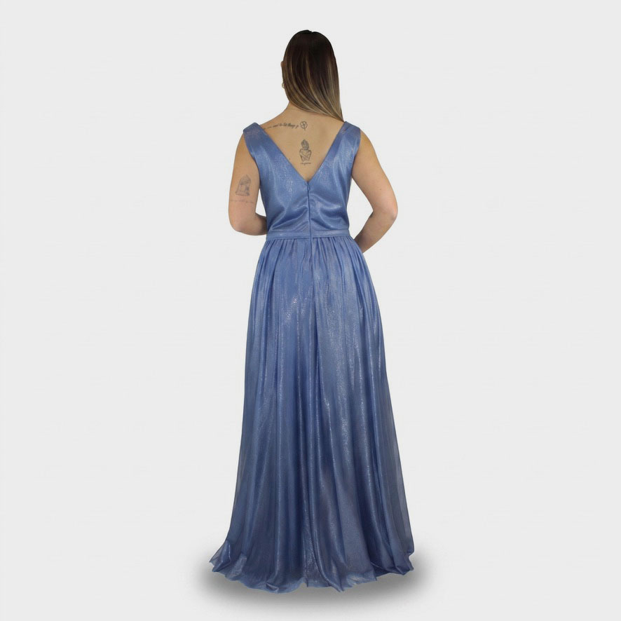 Il nuovo abito indaco della nuova collezione di Elizabeth Moda è leggero e luminoso, questo abito in organza brillantinata incarna un’eleganza delicata