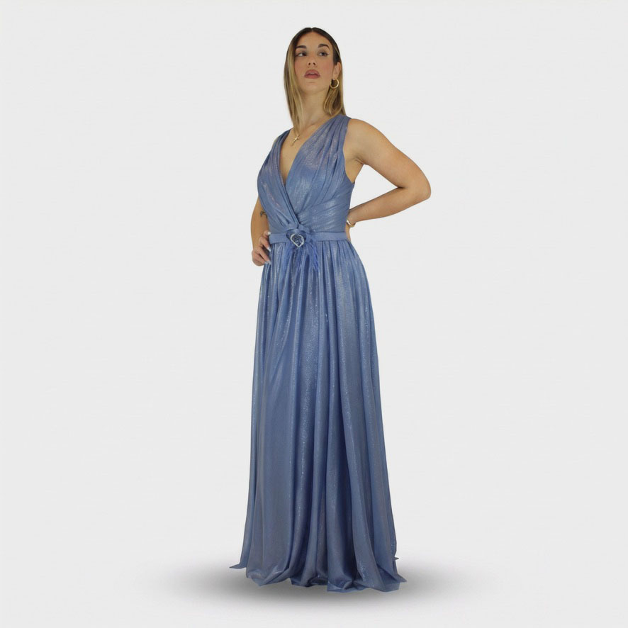 Il nuovo abito indaco della nuova collezione di Elizabeth Moda è leggero e luminoso, questo abito in organza brillantinata incarna un’eleganza delicata e raffinata. Il tessuto, impreziosito da micro riflessi luminosi, dona un effetto etereo e sofisticato ad ogni movimento. Il design a giromanica valorizza le spalle con semplicità, mantenendo una linea pulita e femminile. In vita, un romantico dettaglio floreale aggiunge un tocco distintivo e armonioso, enfatizzando la silhouette con grazia. La gonna plissé completa il look con movimento e leggerezza, creando un effetto fluido e dinamico che rende l’abito perfetto per occasioni speciali. Un capo ideale per cerimonie, eventi eleganti o momenti in cui desideri distinguerti con uno stile raffinato e contemporaneo.