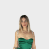 L’abito lungo verde di Elizabeth Moda rappresenta uno straordinario capo semplice in tessuto di raso, che ha un taglio elegante e minimalista, con pochi ornamenti o dettagli decorativi. L’abito presenta una scollatura a cuore, che evidenzia il décolleté sensuale della silhouette femminile che lo porta. L’abito è interamente in tessuto di raso, un tessuto liscio e lucido, che conferisce all’abito un aspetto raffinato e sofisticato. La vera peculiarità del capo sono le stringhe poste ai leterali dell’abito, interamente in strass, che donando lucentezza e tono chic al capo. ll capo presenta una linea a sirena, aderente al busto e alle gambe, con uno spacco regolare super sensuale…Gli accessori ideali da adattare a questo capo possono essere adattati in base all’occasione nel quale verrà indossato il capo.