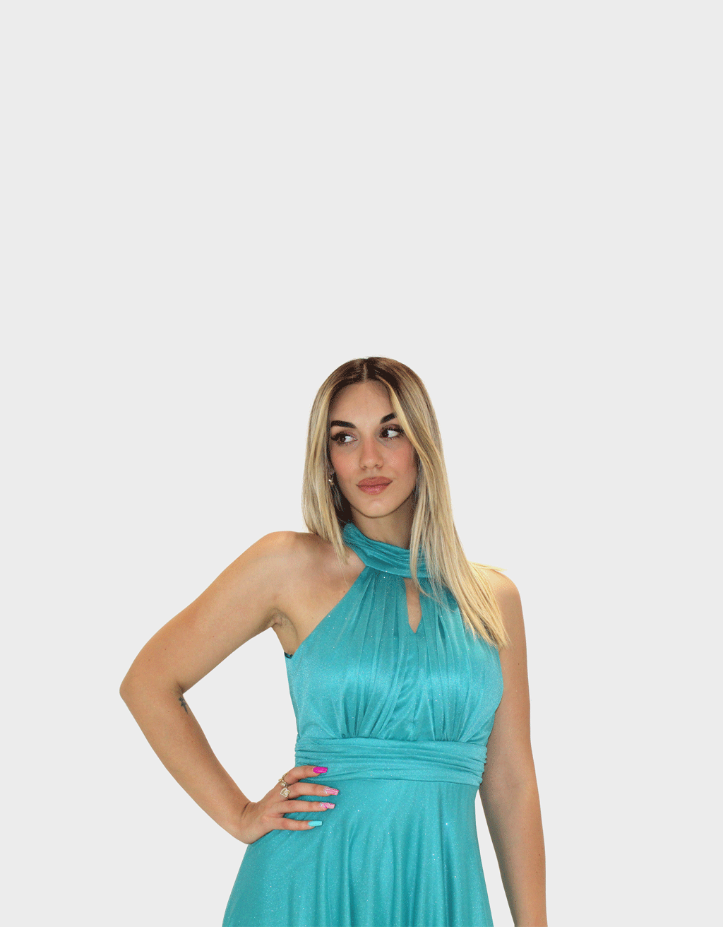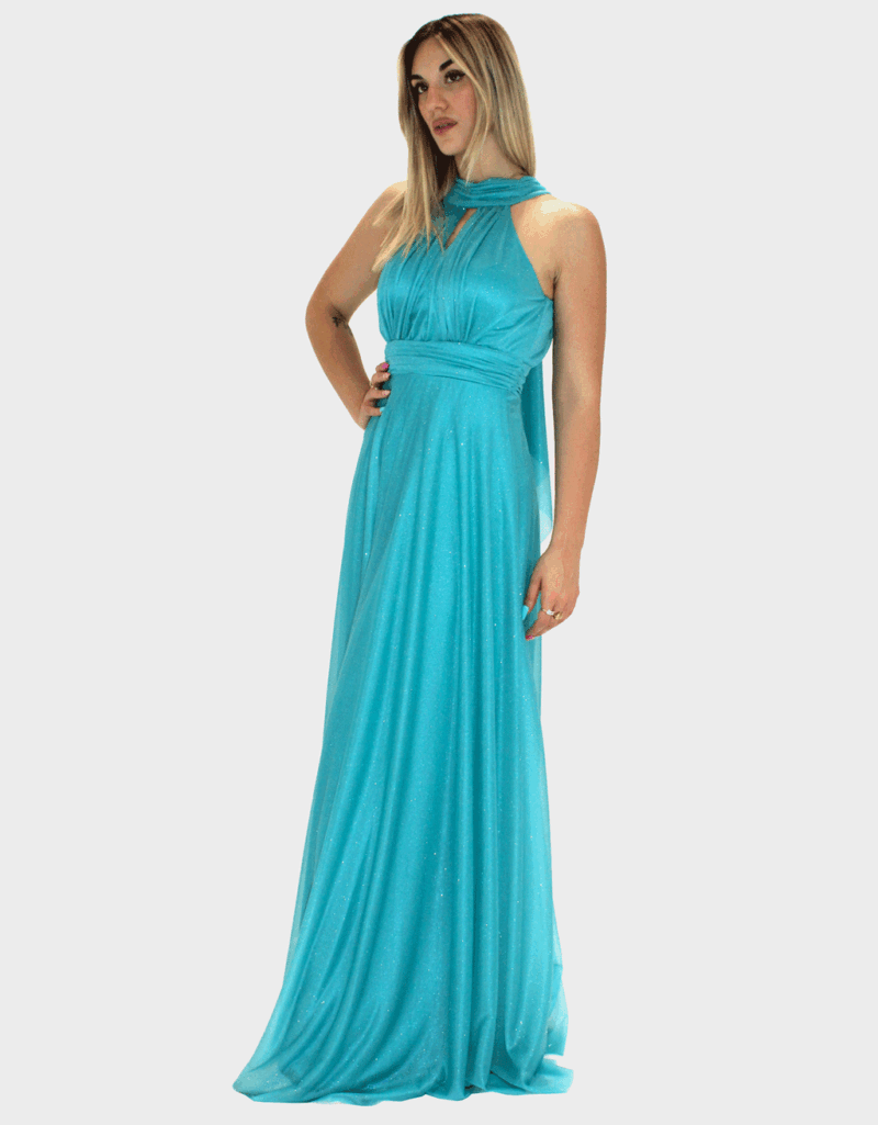 Abito lungo verde tiffany glitter – Elizabeth Moda