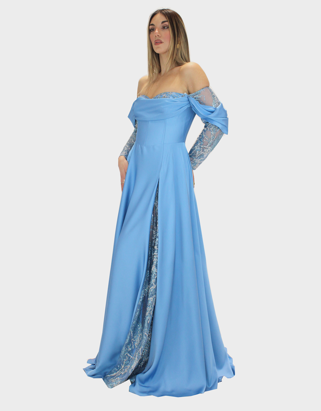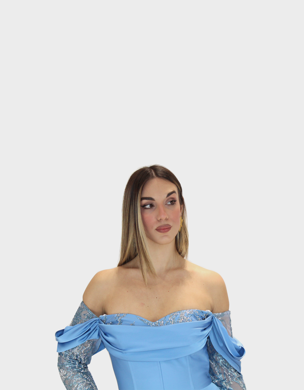 Il nuovo abito polvere della nuova collezione di Elizabeth Moda è estremamente raffinato, realizzato per esaltare la femminilità con dettagli preziosi e una linea senza tempo.