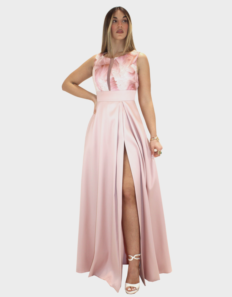 Il nuovo abito rosa della nuova collezione di Ludovica Hassler è raffinato e scenografico, questo abito da cerimonia è pensato per chi desidera distinguersi con eleganza. La vestibilità morbida valorizza la silhouette con naturalezza, garantendo comfort e libertà di movimento. Il protagonista è il gonnellone ampio in taffetà, dalla struttura importante e luminosa, capace di creare volume e movimento ad ogni passo. Il corsetto con fantasia dona carattere e ricercatezza al design, esaltando il punto vita e aggiungendo un tocco sofisticato. Lo spacco sensuale, equilibrato dalla lunghezza importante dell’abito, slancia la figura e aggiunge femminilità senza rinunciare alla classe. Perfetto per cerimonie, eventi eleganti e occasioni speciali in cui vuoi sentirti protagonista.