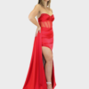 Il nuovo abito rosso della nuova collezione di Elizabeth Moda è raffinato e di grande impatto scenografico, pensato per valorizzare la silhouette con eleganza e femminilità