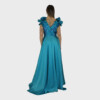 Il nuovo abito verde petrolio della nuova collezione di Ludovica Hassler è scenografico e sofisticato, pensato per chi desidera brillare nelle occasioni più speciali.