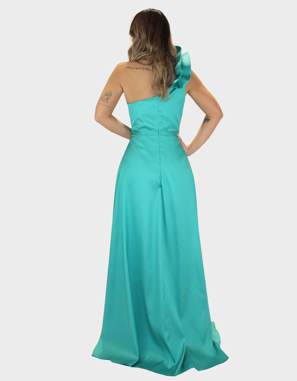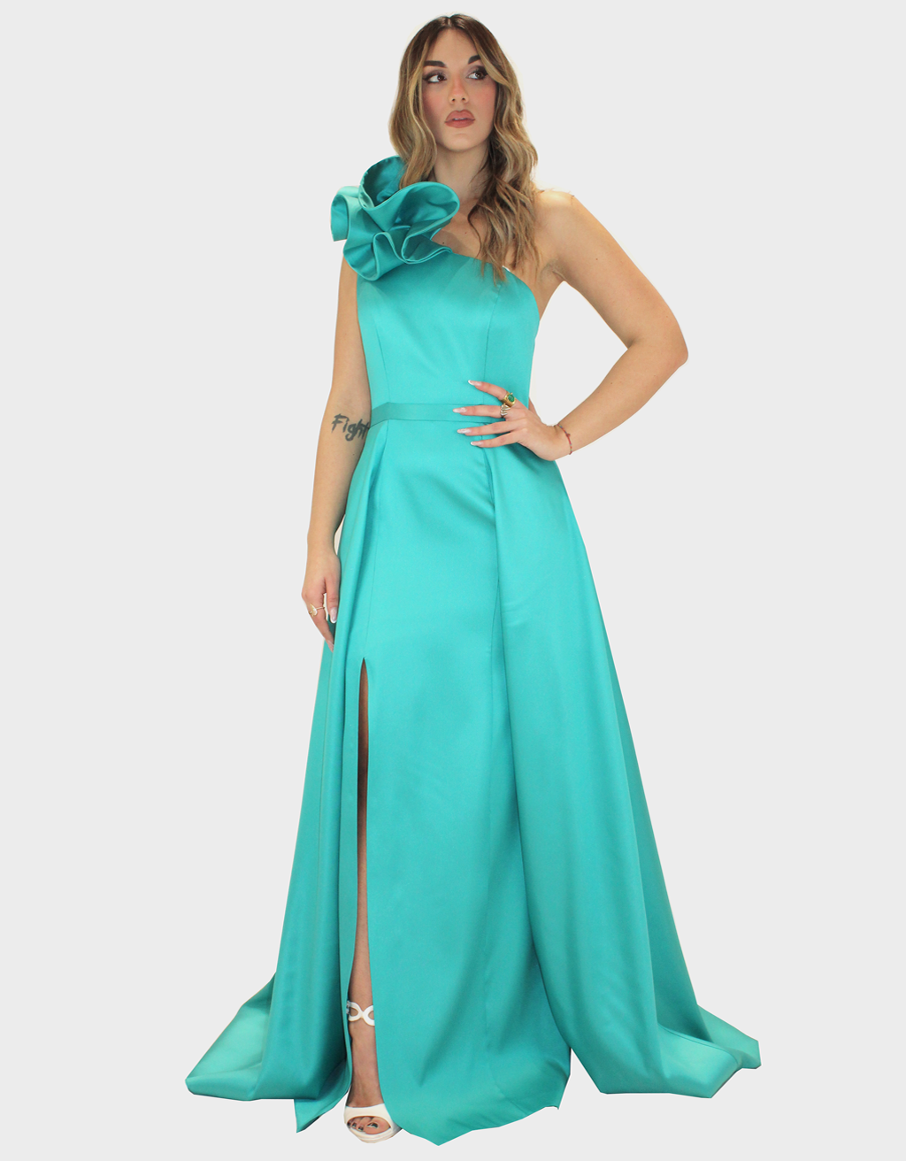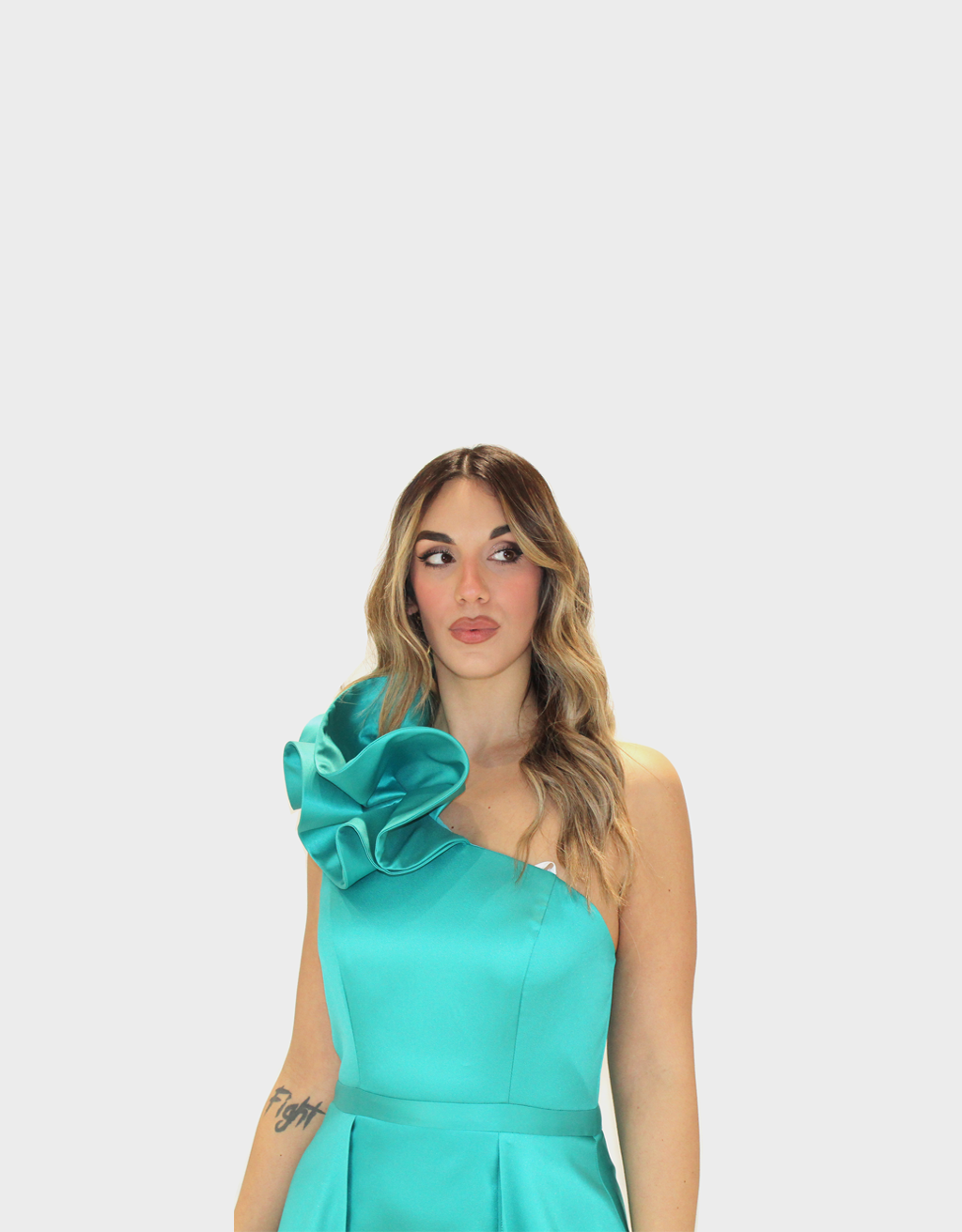 La linea segue la silhouette con equilibrio, mentre il taffetà conferisce una vestibilità strutturata che mantiene la forma e l’eleganza del capo nel tempo. Ideale per cerimonie, eventi serali e occasioni speciali, questo abito rappresenta una scelta di stile audace e raffinata per chi desidera distinguersi con classe.