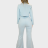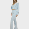 Il nuovo completo polvere della collezione di Sharon è dal gusto sartoriale e contemporaneo, realizzato in pregiato tessuto Cady leggermente gessato