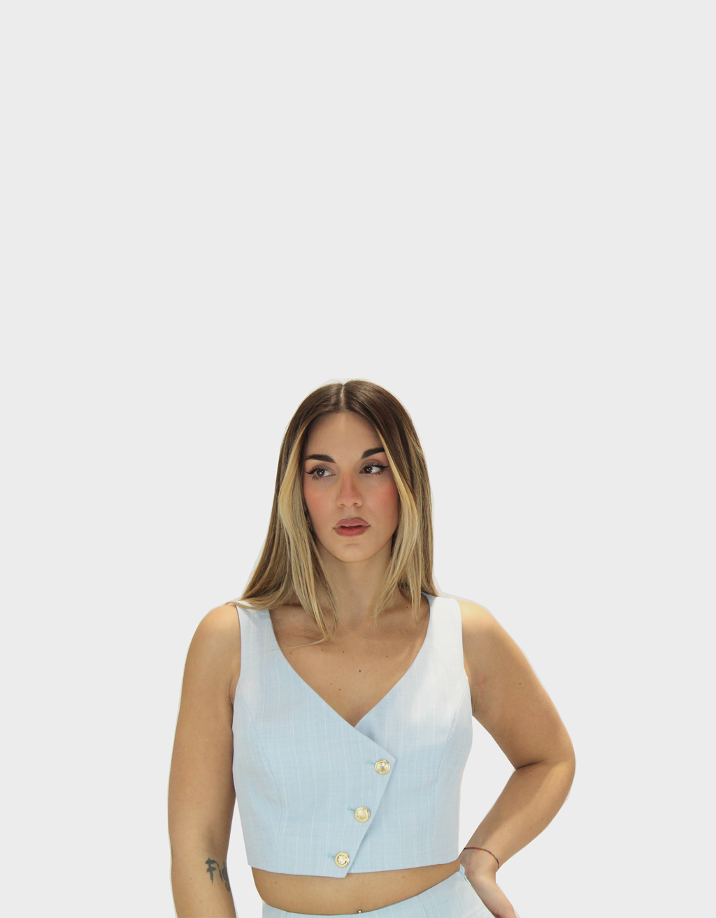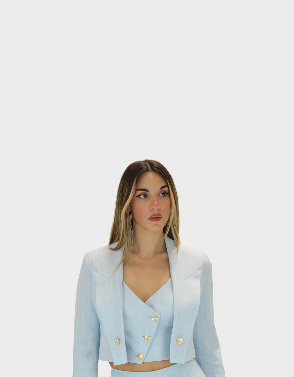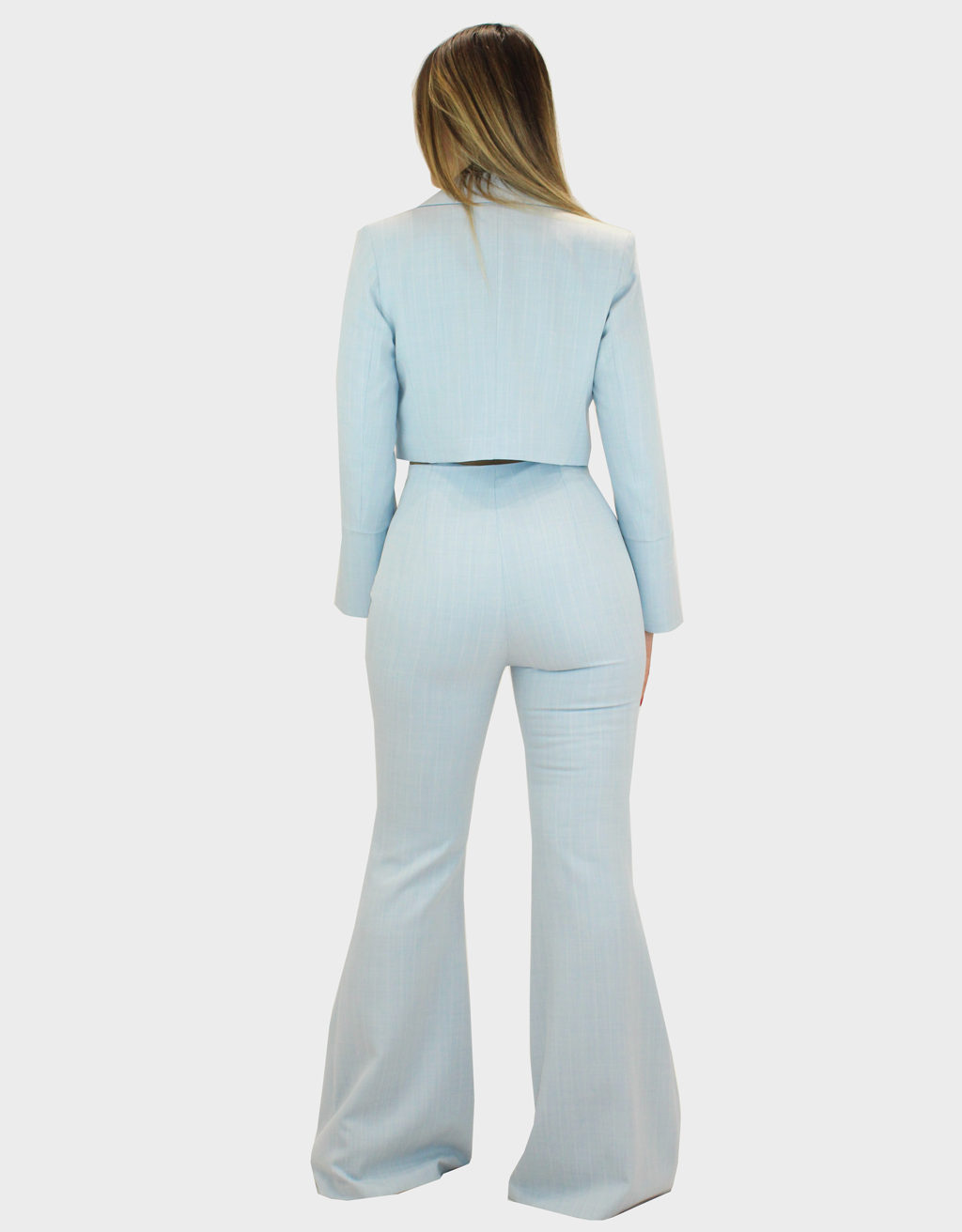 Il nuovo completo polvere della collezione di Sharon è dal gusto sartoriale e contemporaneo, realizzato in pregiato tessuto Cady leggermente gessato, dalla mano fluida e strutturata al tempo stesso. Il pantalone a zampa slancia la silhouette, con una linea pulita e sofisticata che accompagna il movimento con naturale eleganza. Il gilè sottostante, dal taglio essenziale e femminile, aggiunge profondità e carattere al look, permettendo di indossare il completo anche in versione più minimal. La giacca, abbastanza lunga, presenta una vestibilità impeccabile e un design raffinato che valorizza la figura con discrezione. Il motivo gessato delicato dona un tocco di classe senza risultare eccessivo, rendendo il completo ideale per cerimonie, eventi formali e occasioni speciali. Un ensemble versatile e ricercato, pensato per chi desidera distinguersi con stile ed eleganza senza rinunciare al comfort.