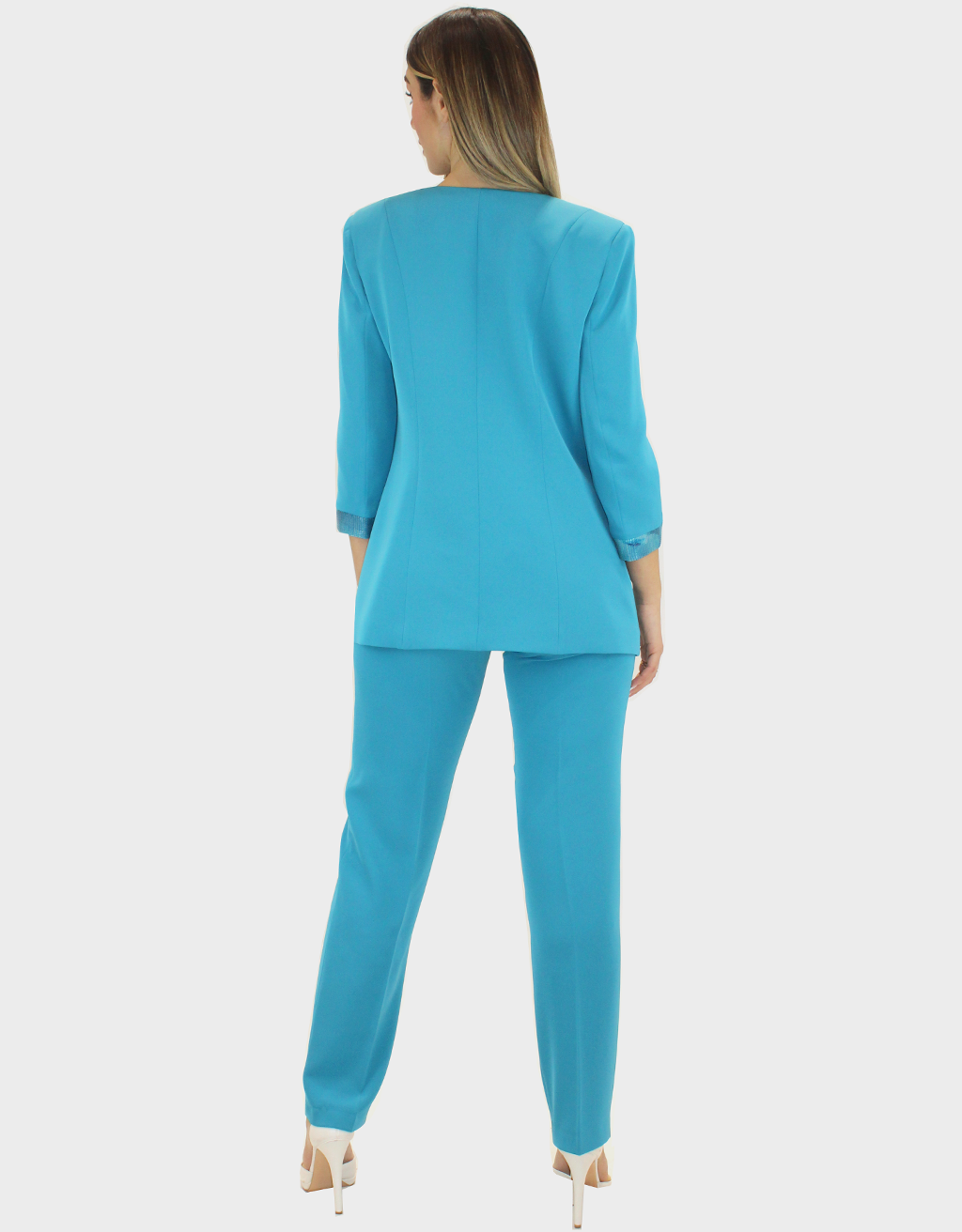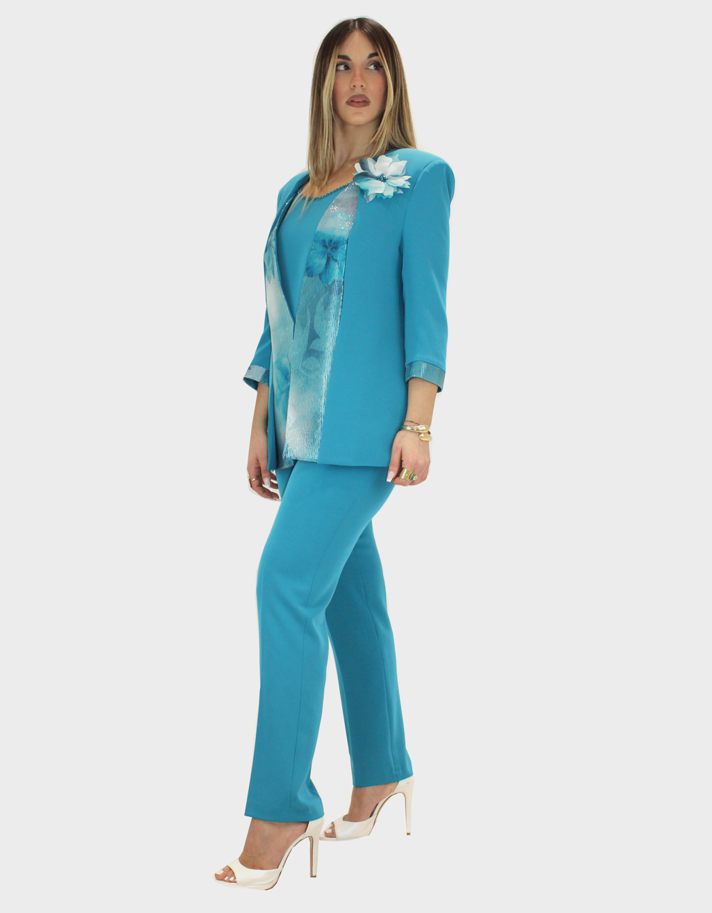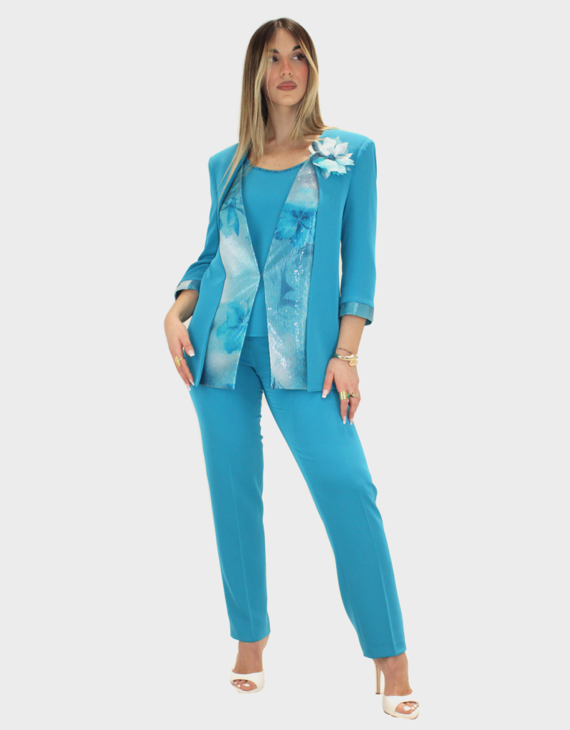 Il nuovo completo tre pezzi verde della nuova collezione di Ludovica Hassler è raffinato e versatile, pensato per chi ama distinguersi con classe nelle occasioni speciali. Questo completo 3 pezzi unisce armoniosamente stile e femminilità, creando un look ricercato e contemporaneo. Il top valorizza la silhouette con una linea pulita ed elegante, mentre il pantalone (o la gonna, se preferisci specificarlo) completa l’insieme con una vestibilità fluida e confortevole, perfetta per slanciare la figura. Protagonista del look è lo spolverino coordinato, leggero e sofisticato, che dona movimento e un tocco scenografico all’intero outfit. La sua linea morbida accompagna le forme con naturalezza, aggiungendo eleganza senza appesantire. Indossato aperto crea un effetto slanciato e dinamico, ideale per cerimonie, eventi formali o occasioni speciali. Un completo pensato per chi desidera un’eleganza moderna, discreta ma d’impatto.