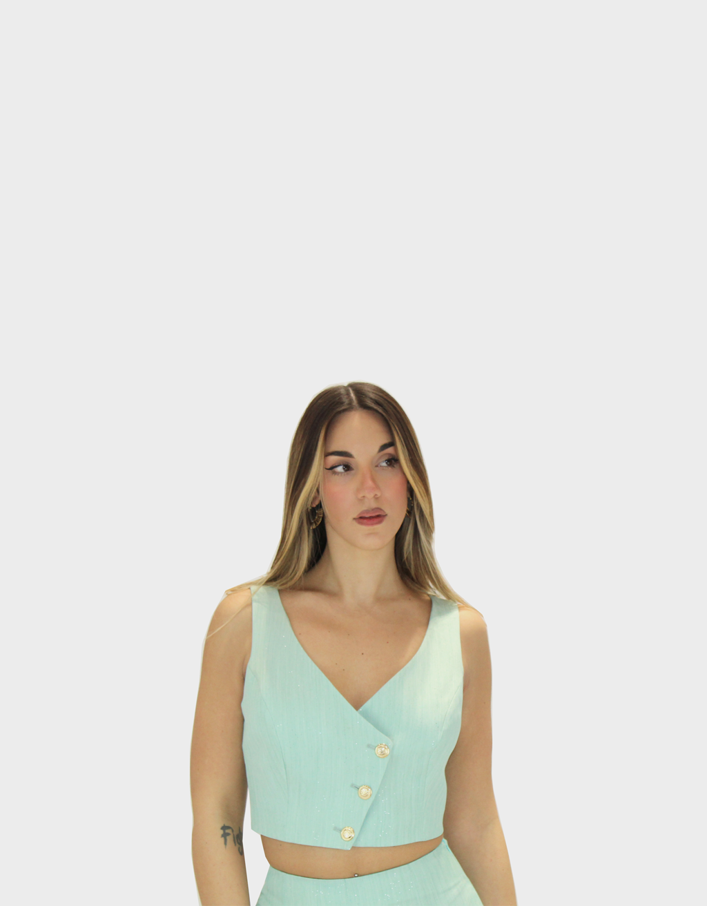 Il nuovo completo verde della collezione di Sharon è dal gusto sartoriale e contemporaneo, realizzato in pregiato tessuto Cady leggermente gessato, dalla mano fluida e strutturata al tempo stesso. Il pantalone a zampa slancia la silhouette, con una linea pulita e sofisticata che accompagna il movimento con naturale eleganza. Il gilè sottostante, dal taglio essenziale e femminile, aggiunge profondità e carattere al look, permettendo di indossare il completo anche in versione più minimal. La giacca, abbastanza lunga, presenta una vestibilità impeccabile e un design raffinato che valorizza la figura con discrezione. Il motivo gessato delicato dona un tocco di classe senza risultare eccessivo, rendendo il completo ideale per cerimonie, eventi formali e occasioni speciali. Un ensemble versatile e ricercato, pensato per chi desidera distinguersi con stile ed eleganza senza rinunciare al comfort.