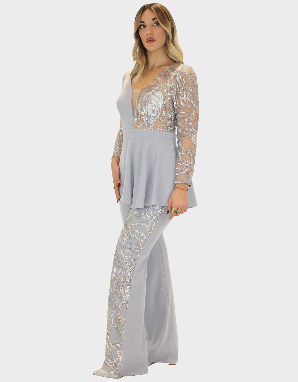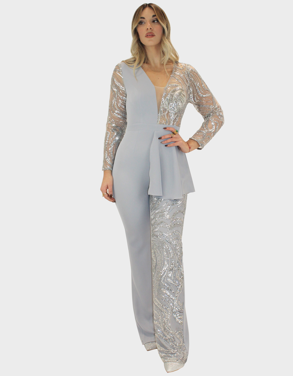 La nuova tuta argento della collezione di Sharon è pensata per chi cerca uno stile sofisticato e moderno.