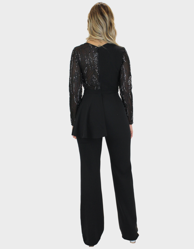 La nuova tuta nera della collezione di Sharon è pensata per chi cerca uno stile sofisticato e moderno. Il corpetto presenta un raffinato dettaglio su un lato, con un pannello trasparente in paillettes che dona luce e movimento al look. Le rouche applicate sull’addome enfatizzano la figura in modo delicato, creando un gioco di texture che unisce glamour e comfort. La parte inferiore della tuta si allunga in una linea fluida, ideale per eventi serali o occasioni speciali, offrendo una vestibilità perfetta e un tocco di eleganza unica. Disponibile in diverse taglie, questa tuta è l’ideale per chi desidera un look ricercato senza rinunciare alla comodità.