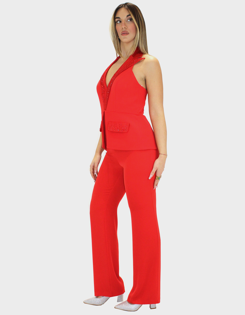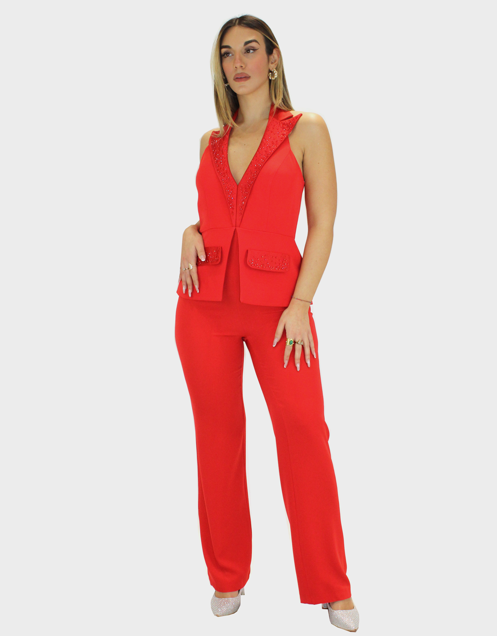 La nuova tuta rossa della nuova collezione di Sharon è femminile dal design ricercato, pensata per valorizzare la silhouette con stile ed eleganza.